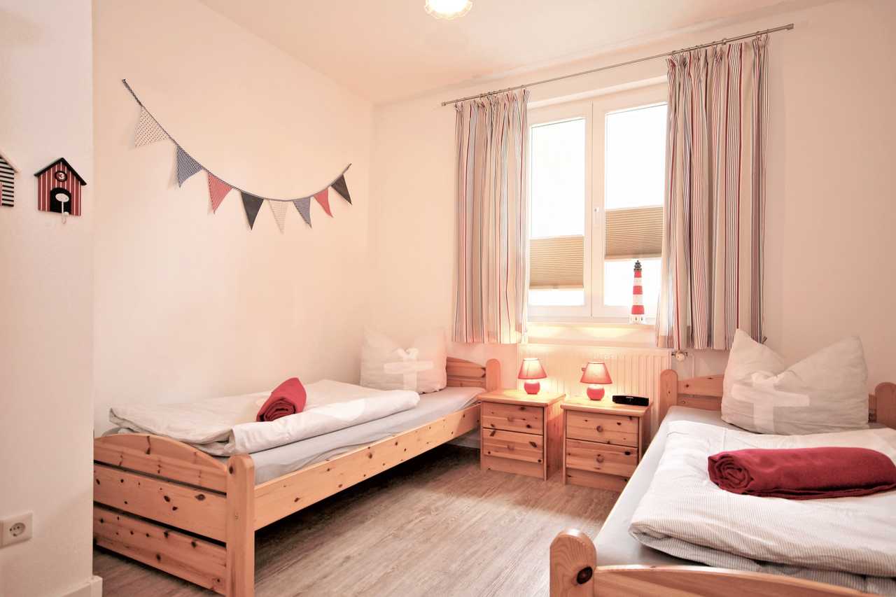 die TOP-Renovierte Ferienwohnung mit eigenem Garten. Die Ferienwohnung liegt in einem der vier roten Häuser,