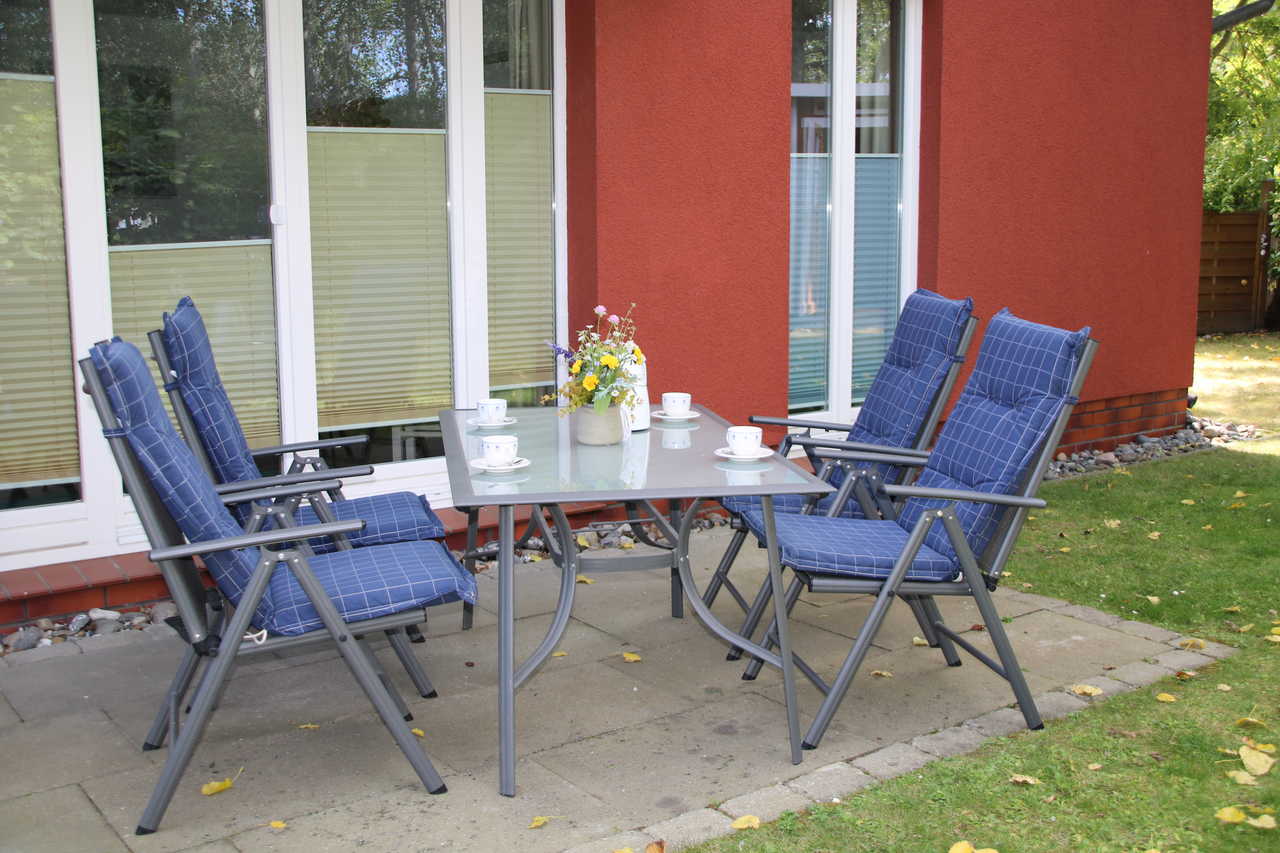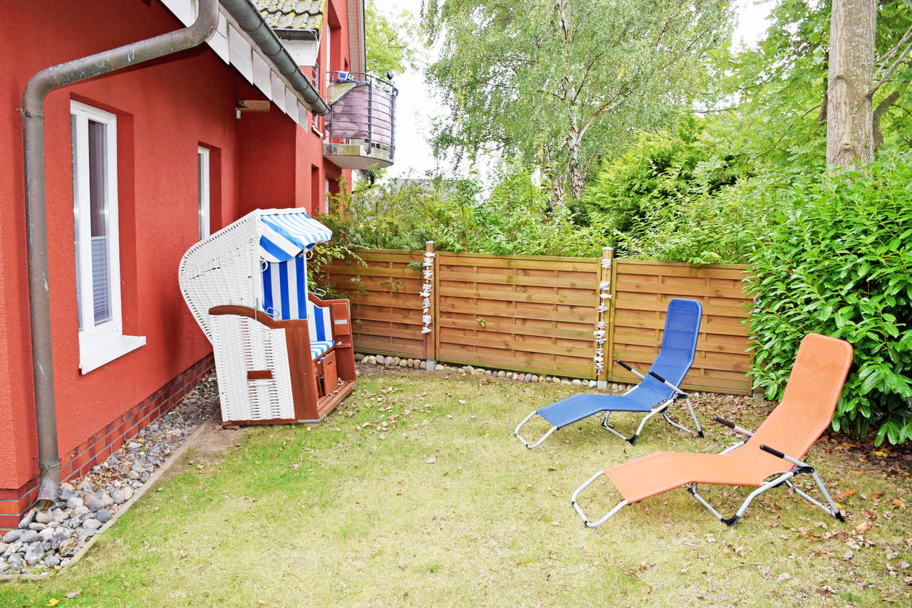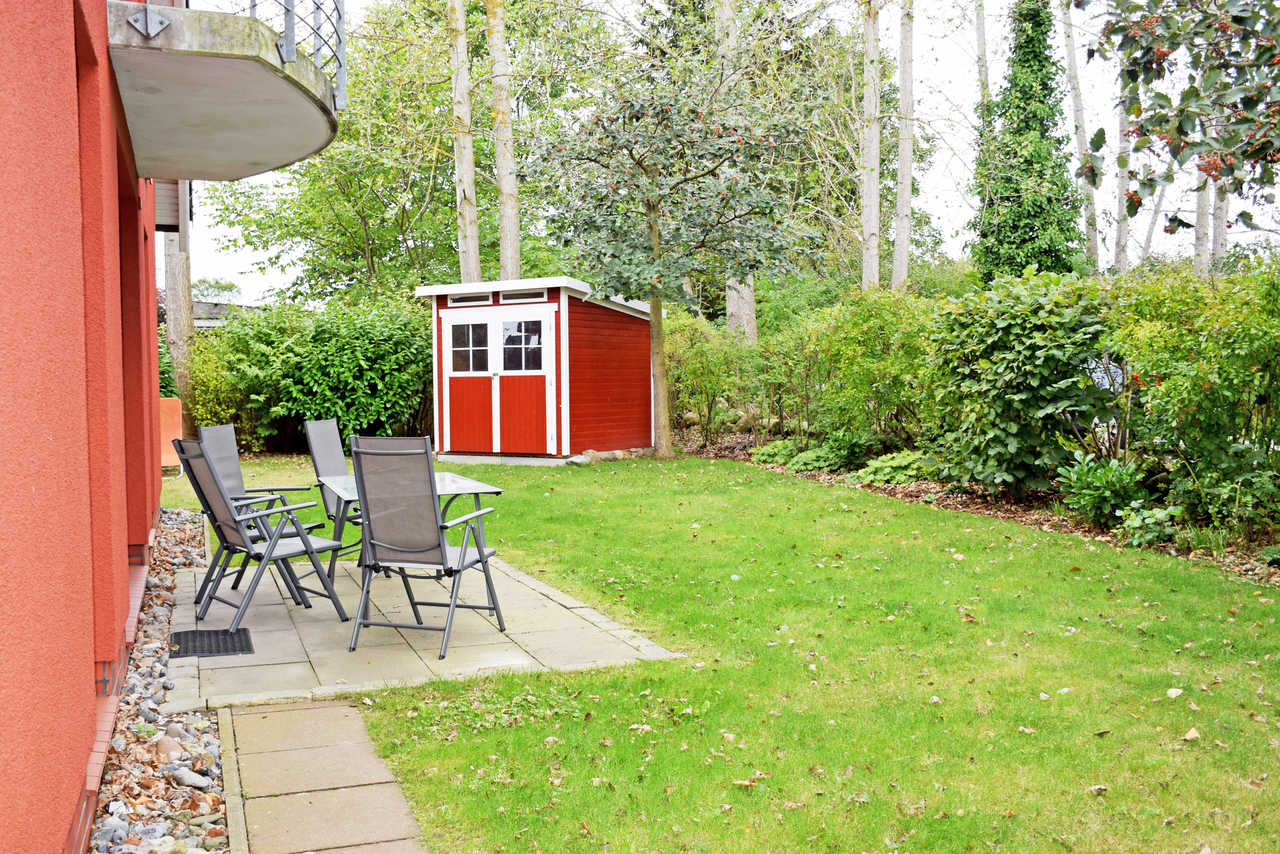 Im eigenen, zur Wohnung gehörendem Garten kann man auf der Terrasse mit Gartenmöbeln bei wohliger Sonne bequem entspannen.